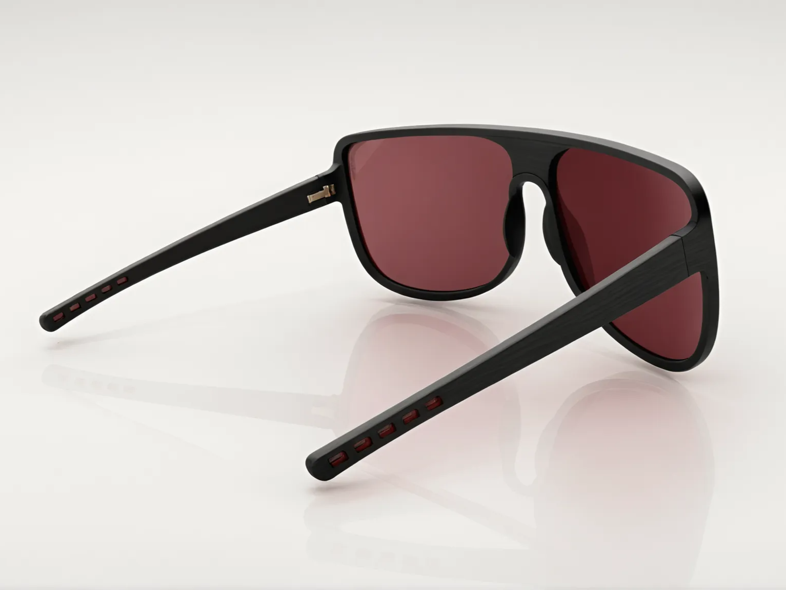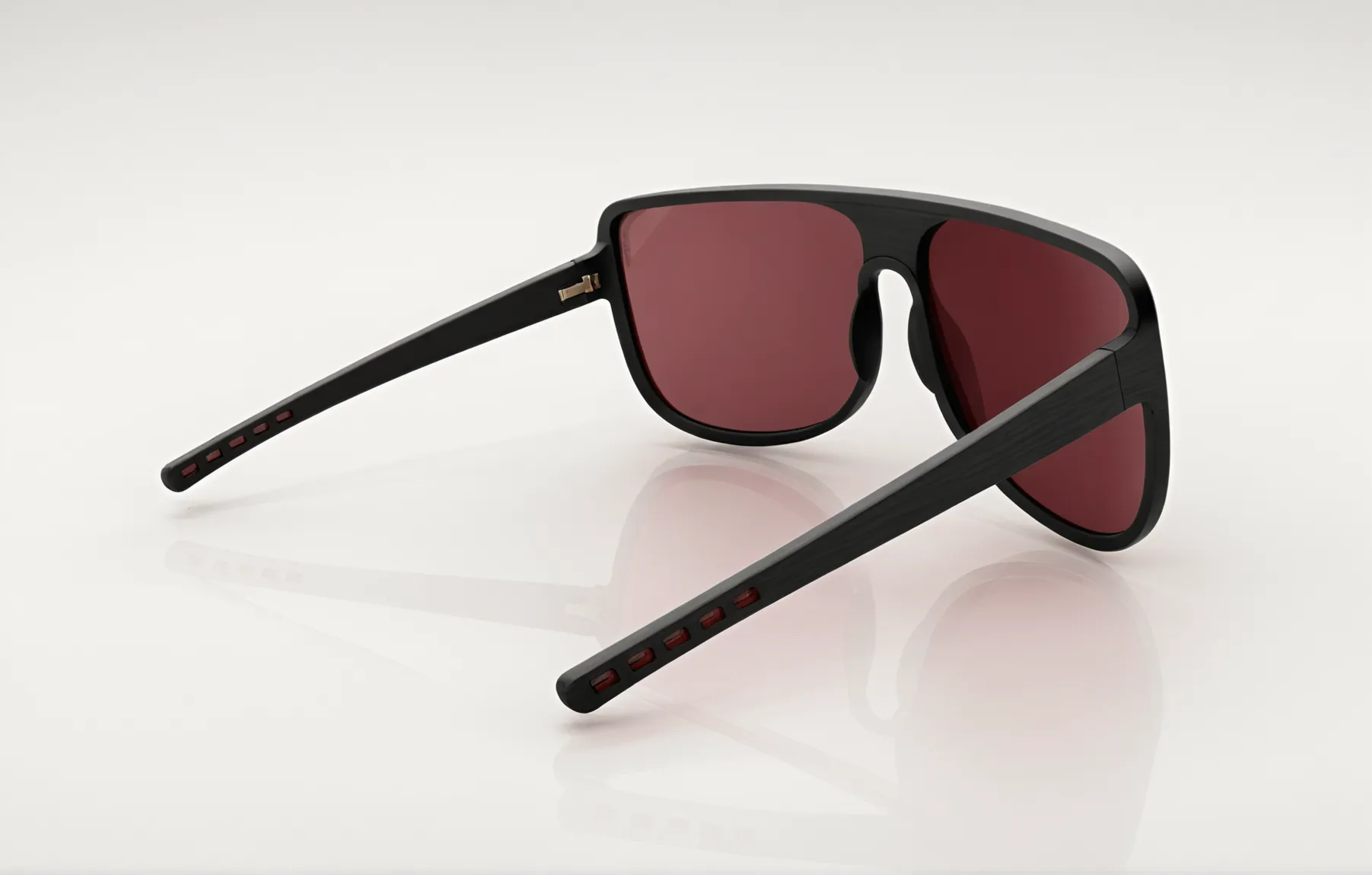Alpine inspired sunglasses. Designed to reduce amount of glare and exposure to the elements around the eyes. Laminated wood and plastic construction.